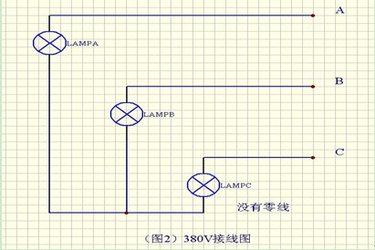 2、滑觸線電源指示燈在無零線的情況下,各指示燈的一端分別接電源A B C,另一端接在一起。這時(shí)請選用380V天車滑觸線電源指示燈。(如圖2)交流3000V同理。