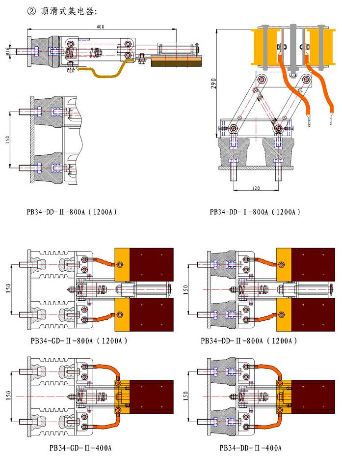 附:PB系列剛體滑觸線集電器規(guī)格尺寸圖