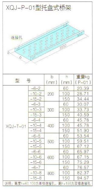金屬電纜橋架托盤式電纜橋架具有重量輕、載荷大、造型美觀、結(jié)構(gòu)簡單、安裝方便等優(yōu)點(diǎn)。托盤式橋架是石油、化工、電力、輕工、電視、電訊等方面應(yīng)用最廣泛的一種。它既適用于動力電纜的安裝,也適用于控制電纜的敷設(shè)。托盤式橋架在不同跨距下最大允許均布載荷及變形量不同:托盤式橋架其表面處理分為靜電噴塑、鍍鋅熱鍍鋅、噴仿瓷、鍍鋅鈍化幾種,在重腐蝕環(huán)境中可特殊防腐處理。托盤式橋架血有護(hù)罩,其所有配件與梯級式、槽式橋架通用。